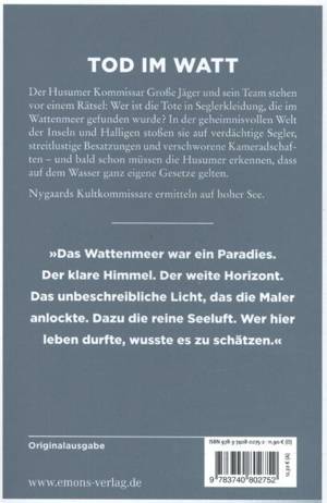 Der Husumer Kommissar Große Jäger und sein Team stehen vor einem Rätsel: Wer ist die Tote in Seglerkleidung, die im Wattenmeer gefunden wurde? In der geheimnisvollen Welt der Inseln und Halligen stoßen sie auf verdächtige Segler, streitlustige Besatzungen und verschworene Kameradschaften - und bald schon müssen die Husumer erkennen, dass auf dem Wasser ganz eigene Gesetze gelten.
