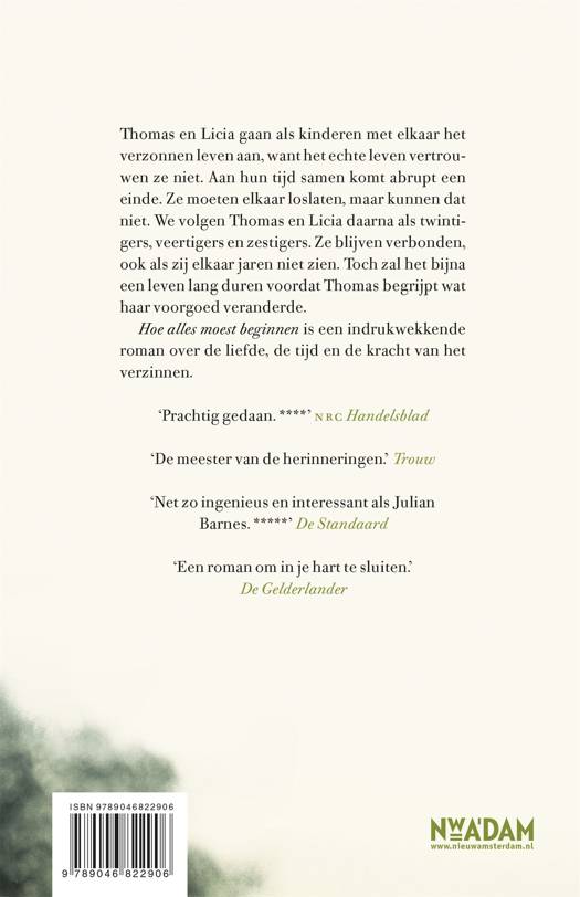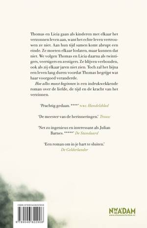 Thomas en Licia gaan als kinderen met elkaar het verzonnen leven aan, want het echte leven vertrouwen ze niet. Aan hun tijd samen komt abrupt een einde. Ze moeten elkaar loslaten, maar kunnen dat niet. We volgen Thomas en Licia daarna als twintigers, veertigers en zestigers. Zij blijven verbonden, ook als zij elkaar jaren niet zien. Toch zal het bijna een leven lang duren voordat Thomas begrijpt wat haar voorgoed veranderde. Hoe alles moest beginnen is een indrukwekkende roman over de liefde, de tijd, en de kracht van het verzinnen.