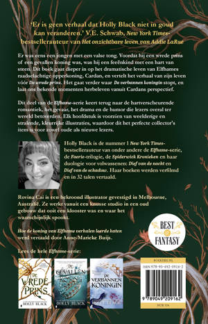 Voordat hij een wrede prins of een valse koning was, was hij een feeënkind met een hart van steen. Zijn verhaal gaat dieper in op het dramatische leven van Elfhames raadselachtige opperkoning, Cardan, en bevat heerlijke details over zijn leven vóór De wrede prins. Dit avontuur gaat verder dan De verbannen koningin, en vertelt bekende momenten vanuit Cardans perspectief.