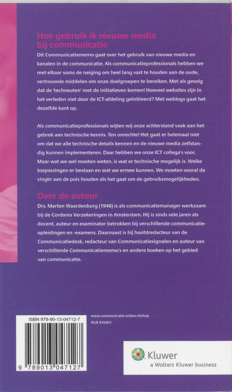 Dit Communicatiememo gaat over het gebruik van nieuwe media en kanalen in de communicatie. Als communicatieprofessionals hebben we met elkaar soms de neiging om heel lang vast te houden aan de oude, vertrouwde middelen om onze doelgroepen te bereiken. Met als gevolg dat de 'techneuten' met de initiatieven komen! Hoeveel websites zijn in het verleden niet door de ICT-afdeling ge?nitieerd? Met weblogs gaat het dezelfde kant op.