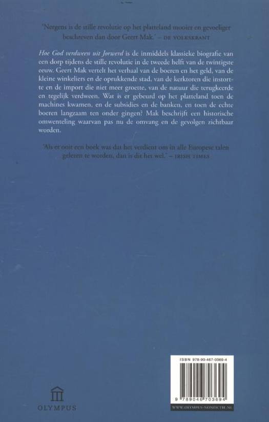 Hoe God verdween uit Jorwerd is de inmiddels klassieke biografie van een dorp tijdens de stille revolutie in de tweede helft van de twintigste eeuw. Geert Mak vertelt het verhaal van de boeren en het geld, van de kleine winkeliers en de oprukkende stad, van de kerktoren die instortte en de import die niet meer groette, van de natuur die terugkeerde en tegelijk verdween. Wat is er gebeurd op het platteland toen de machines kwamen, en de subsidies en de banken, en toen de echte boeren langzaam ten onder gingen? Mak beschrijft een historische omwenteling waarvan pas nu de omvang en de gevolgen zichtbaar worden.
