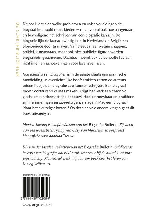 Hoe schrijf ik een biografi e laat zien welke problemen en valse verleidingen de biograaf het hoofd moet bieden maar vooral ook hoe aangenaam en bevredigend het schrijven van een biografi e kan zijn. De biografi e lijkt in Nederland en België een bloeiperiode door te maken. Van steeds meer wetenschappers, politici, kunstenaars en zelfs niet–publieke fi guren worden biografi eën geschreven. Daardoor neemt ook de behoefte aan aanbevelingen en richtlijnen voor levens verhalen toe. Hoe schrijf ik een biografi e is in de eerste plaats een praktische handleiding. In overzichtelijke hoofdstukken zetten de auteurs, beiden met de nodige ervaring in het schrijven van biografi eën, uiteen hoe je een biografi e zou kunnen schrijven. Een biograaf moet voortdurend keuzes maken. Krijgt het boek een chronologische of een thematische opbouw? Zijn herinneringen en ooggetuigenverslagen betrouwbaar? Mag een biograaf van de hoofdpersoon "door het sleutelgat loeren"? Op deze en vele andere vragen gaat dit boek uitvoerig in. De auteurs sluiten af met een beschouwing over de huidige stand van zaken van de Nederlandstalige biografi e.