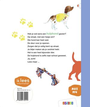 Heb je wel eens een hulphond gezien? Op straat, met een hesje om? Die hond kan heel veel. De deur voor je openen. Zorgen dat je veilig bent op straat. Je blijer maken als je verdriet hebt. Het is dus een heel bijzonder dier. De hulphond is zelfs naar school geweest. Ja, echt! Lees maar ...