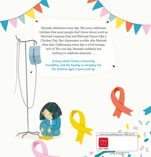 A story about illness, inclusivity, friendship, and the beauty in everyday life. For children ages 4 years and up. Hannah celebrates every day. She even celebrates holidays that most people don't know about, such as National Linguine Day and National Dance Like a Chicken Day. Her classmates wonder why Hannah does that. Celebrating every day is a bit strange, isn't it? But one day, Hannah suddenly has nothing to celebrate anymore . . .