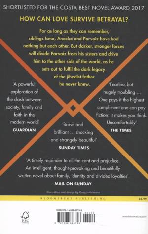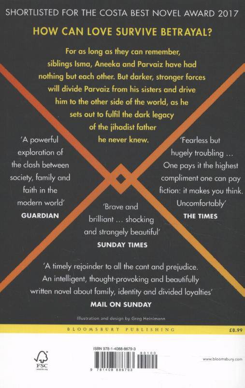 Isma is free. After years spent raising her twin siblings in the wake of their mother's death, she is finally studying in America, resuming a dream long deferred. But she can't stop worrying about Aneeka, her beautiful, headstrong sister back in London - or their brother, Parvaiz, who's disappeared in pursuit of his own dream: to prove himself to the dark legacy of the jihadist father he never knew.