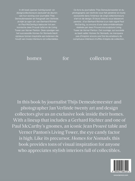 Collectors design their homes with their prized objects in mind. In this book 20 art and design collectors open the doors to their homes, many for the first time. You will be amazed at what you'll see: from a Giacometti sculpture to a garbage bag by Gustav Metzger, from an iconic Eames lounge chair to the Living Tower by Verner Panton. This successor to the successful book Homes for Nomads (9789401477437) offers pages and pages of inspiration for all those who love beautiful and real-life interiors, and who perhaps live with, and love, their own collections.