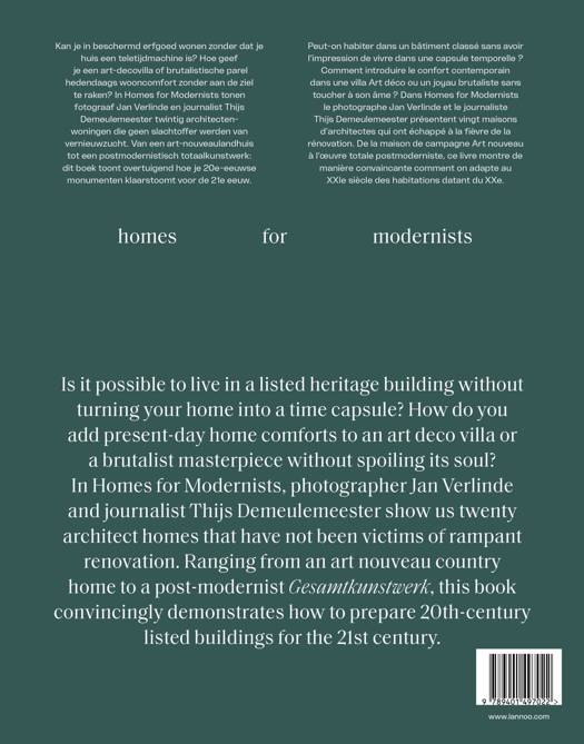 In Homes for Modernists tonen fotograaf Jan Verlinde en journalist Thijs Demeulemeester twintig architecten-woningen die geen slachtoffer werden van vernieuwzucht.