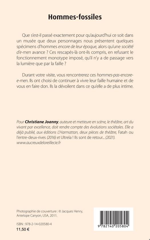 Que s’est-il passé exactement pour qu’aujourd’hui ce soit dans un musée que deux personnages nous présentent quelques spécimens d’hommes encore de leur époque, alors qu’une société d’e-men avance ? Ces rescapés-là ont-ils compris, en refusant le fonctionnement monotype imposé, qu’il n’y a de passage vers la lumière que par la faille ? Durant votre visite, vous rencontrerez ces hommes-pas-encore e-men. Ils ont choisi de continuer à vivre leur faille humaine et de vous en faire don. Ils la dévoilent dans ce qu’elle a de plus intime
