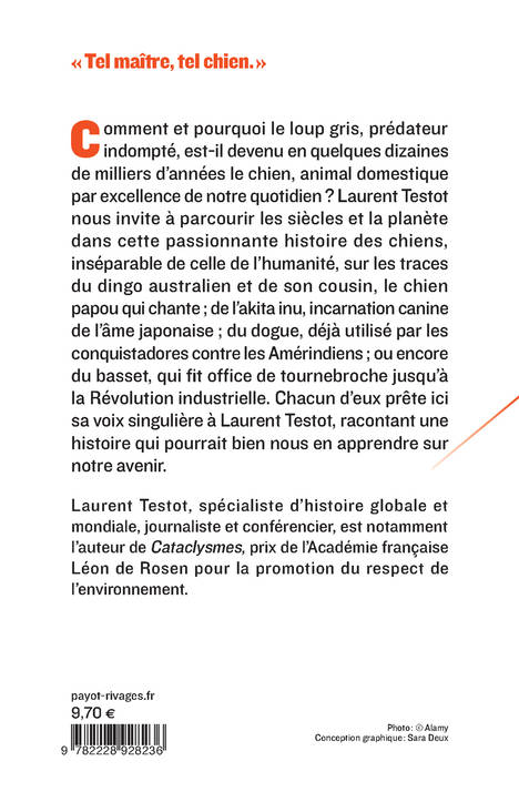 Comment et pourquoi le loup gris, prédateur indompté, est-il devenu en quelques dizaines de milliers d'années le chien, animal domestique par excellence de notre quotidien ? Laurent Testot nous invite à parcourir les siècles et la planète dans cette passionnante histoire des chiens, inséparable de celle de l'humanité, sur les traces du xoloitzcuintle, mets de fête des Aztèques ; du dingo australien et de son cousin, le chien papou qui chante ; de l'akita inu, incarnation canine de l'âme japonaise ; du dogue, déjà utilisé par les conquistadores contre les Amérindiens ; ou encore du basset, qui fit office de tournebroche jusqu'à la Révolution industrielle. Chacun d'eux prête ici sa voix singulière à Laurent Testot, racontant une histoire qui pourrait bien nous en apprendre sur notre avenir.