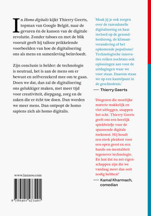 In Homo Digitalis kijkt Thierry Geerts, topman van Google België, naar de gevaren én de kansen van de digitale revolutie. Zonder taboes en met de blik vooruit geeft hij talloze prikkelende voorbeelden van hoe de digitalisering ons als mens en samenleving beïnvloedt. Zijn conclusie is helder: de technologie is neutraal, het is aan de mens om er bewust en zelfzeker mee om te gaan. Doen we dat, dan zal de digitalisering ons gelukkiger maken, met meer tijd voor creativiteit, diepgang, zorg en de zaken die er écht toe doen. Dan worden we meer mens. Dan ontpopt de homo sapiens zich als homo digitalis.