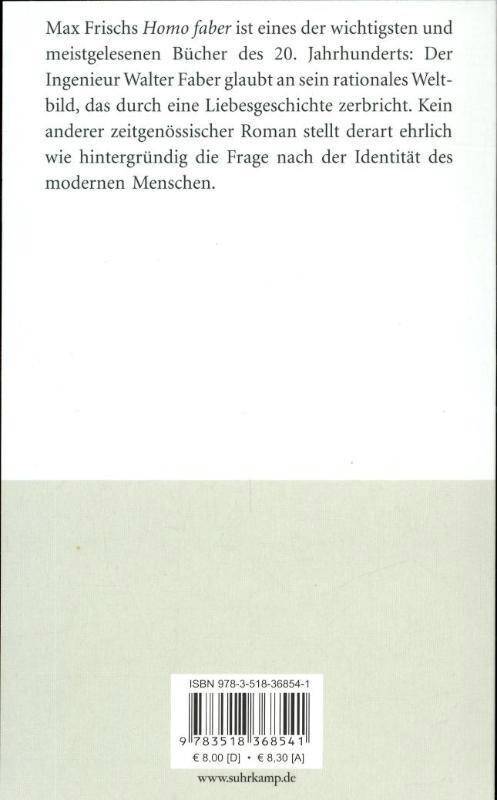 Max Frischs Homo faber ist eines der wichtigsten und meistgelesenen Bücher des 20. Jahrhunderts: Der Ingenieur Walter Faber glaubt an sein rationales Weltbild, das aber durch eine 'Liebesgeschichte' nachhaltig zerbricht.