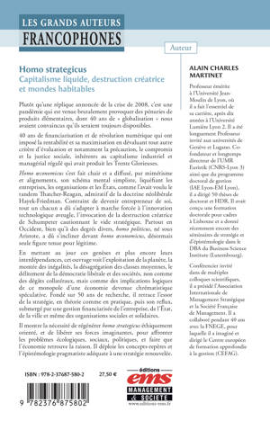 En mettant au jour ces genèses et plus encore leurs interdépendances, cet ouvrage voit l'exploitation de la planète, la montée des inégalités, la désagrégation des classes moyennes, le délitement de la démocratie libérale et des sociétés, non comme des dégâts collatéraux, mais comme des implications logiques de ce monopole d'une économie devenue chrématistique spéculative. Fondé sur 50 ans de recherche, il retrace l'essor de la stratégie, en théorie comme en pratique, puis son reflux, submergé par une gestion financiarisée de l'entreprise, de l'État, de la ville et même des organisations sociales et solidaires.