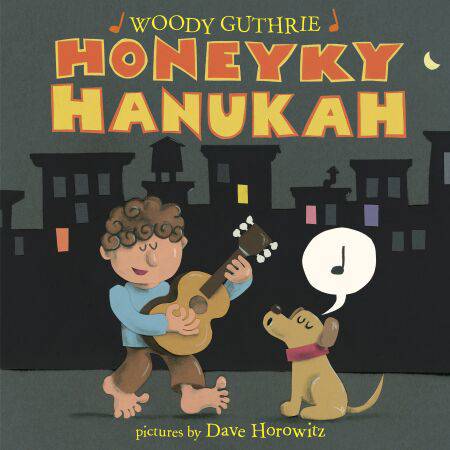 In Woody Guthrie’s rowdy, funny celebration of a Hanukah night, a young boy and his dog move merrily from house to house, gathering up family and friends for a big feast at Bubbe’s.