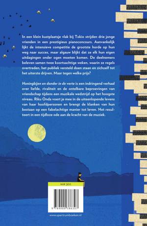 Honingbijen en donder in de verte is een indringend verhaal over liefde, rivaliteit en de ontelbare beproevingen van vriendschap tijdens een competitie op het hoogste niveau. Riku Onda voert je mee in de bijzondere levens van haar hoofdpersonen en brengt klanken op een fabelachtige manier tot leven. Het resulteert in een tijdloze ode aan de kracht van muziek.