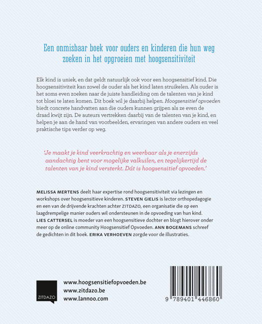 Elk kind is uniek, en dat geldt natuurlijk ook voor een hoogsensitief kind. Die hoogsensitiviteit kan zowel de ouder als het kind laten struikelen. Als ouder is het soms even zoeken naar de juiste handleiding om de talenten van je kind tot bloei te laten komen. Dit boek wil je daarbij helpen. Hoogsensitief opvoeden biedt concrete handvatten aan die ouders kunnen grijpen als ze even de draad kwijt zijn. De auteurs vertrekken daarbij van de talenten van je kind, en helpen je aan de hand van voorbeelden, ervaringen van andere ouders en veel praktische tips verder op weg.