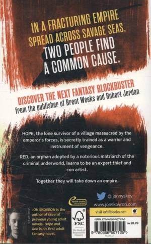 With intense characters, blisteringly-paced action and a heart-stopping plot, Hope and Red is destined to be the next fantasy blockbuster. Perfect for fans of Brent Weeks, Brandon Sanderson and Peter V. Brett.
