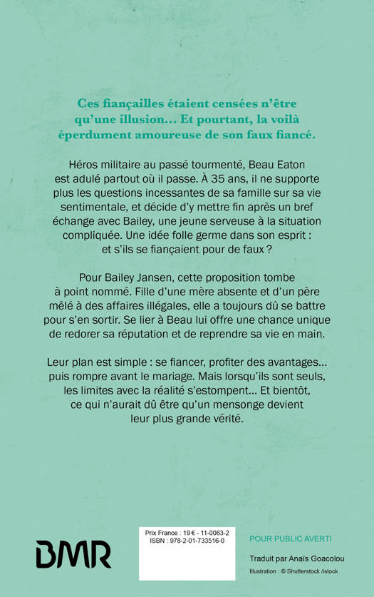 Héros militaire au passé tourmenté, Beau Eaton est adulé partout où il passe. À 35 ans, il ne supporte plus les questions incessantes de sa famille sur sa vie sentimentale, et décide d’y mettre fin après un bref échange avec Bailey, une jeune serveuse à la situation compliquée. Une idée folle germe dans son esprit : et s’ils se fiançaient pour de faux ? Pour Bailey Jansen, cette proposition tombe à point nommé. Fille d’une mère absente et d’un père mêlé à des affaires illégales, elle a toujours dû se battre pour s’en sortir. Se lier à Beau lui offre une chance unique de redorer sa réputation et de reprendre sa vie en main. Leur plan est simple : se fiancer, profiter des avantages… puis rompre avant le mariage. Mais lorsqu’ils sont seuls, les limites avec la réalité s’estompent… Et bientôt, ce qui n’aurait dû être qu’un mensonge devient leur plus grande vérité.