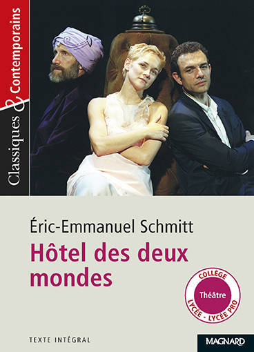 Existe-t-il un palier entre la conscience et la mort? C’est la question que pose cet « hôtel des deux mondes », qui accueille des pensionnaires se trouvant entre la vie et la mort… Comme avec Oscar et la dame rose, Schmitt aborde ici la question de la vie après la mort avec légèreté et finesse. Modernité théâtrale et humour font de ce texte un ouvrage que les élèves liront avec autant de plaisir que de profit.