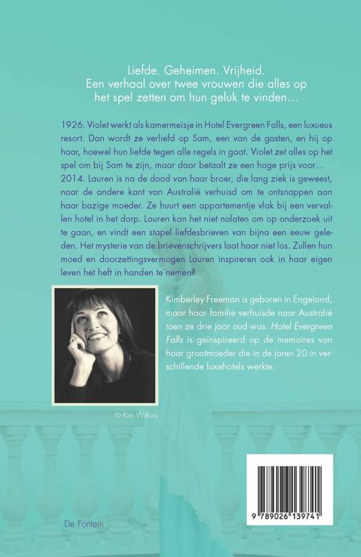 'Hotel Evergreen Falls' is de derde roman van Kimberley Freeman, na 'Wilde bloemen' en 'Walviseiland'.