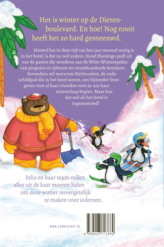 Bovendien wil mevrouw Methusalem, de oude schildpad die in het hotel woont, een bijzonder feest geven voor al haar vrienden voor ze aan haar winterslaap begint. Maar kan dat wel als het hotel is ingesneeuwd?