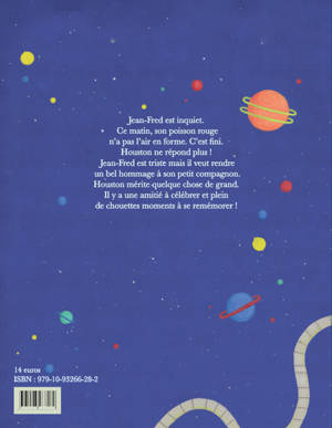 Jean-Fred est inquiet. Ce matin, son poisson rouge n'a pas l'air en forme. Il faut se rendre à l'évidence, c'est fini. Houston ne répond plus ! Jean-Fred est triste mais veut rendre un bel hommage à son petit compagnon. Houston mérite quelque chose de grand. Il y a une amitié à célébrer et plein de chouettes moments à se remémorer !