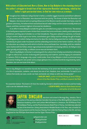 How to Say Babylon is Sinclair’s reckoning with the culture that initially nourished but ultimately sought to silence her; it is her reckoning with patriarchy and tradition, and the legacy of colonialism in Jamaica. Rich in lyricism and language only a poet could evoke, How to Say Babylon is both a universal story of a woman finding her own power and a unique glimpse into a rarefied world we may know how to name, Rastafari, but one we know little about.