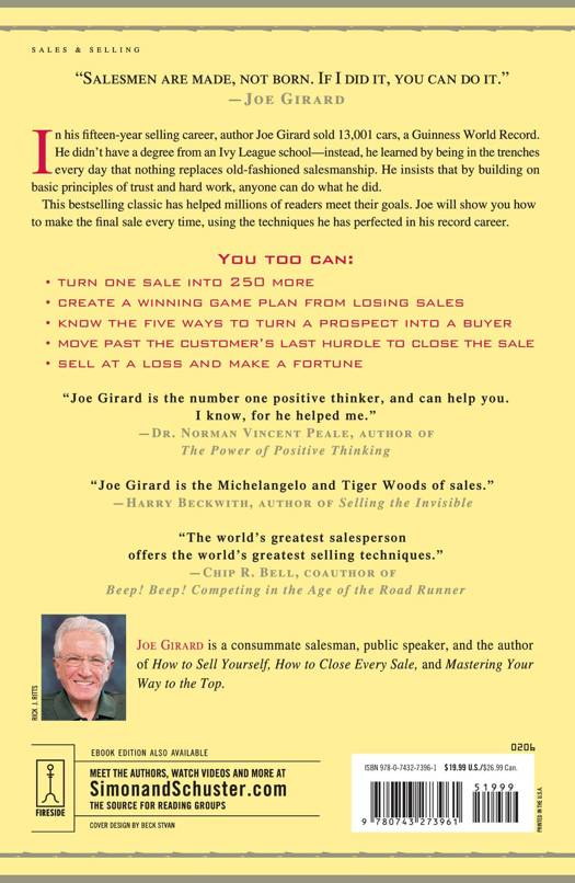 In his fifteen-year selling career, author Joe Girard sold 13,001 cars, a Guinness World Record. He didn't have a degree from an Ivy League school -- instead, he learned by being in the trenches every day that nothing replaces old-fashioned salesmanship. He insists that by building on basic principles of trust and hard work, anyone can do what he did.