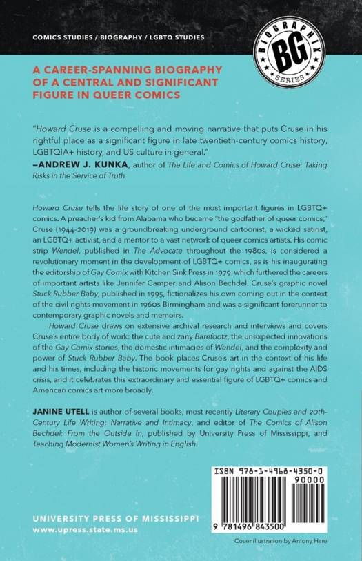 Howard Cruse draws on extensive archival research and interviews and covers Cruse's entire body of work: the cute and zany Barefootz, the unexpected innovations of the Gay Comix stories, the domestic intimacies of Wendel, and the complexity and power of Stuck Rubber Baby. The book places Cruse's art in the context of his life and his times, including the historic movements for gay rights and against the AIDS crisis, and it celebrates this extraordinary and essential figure of LGBTQ+ comics and American comics art more broadly.
