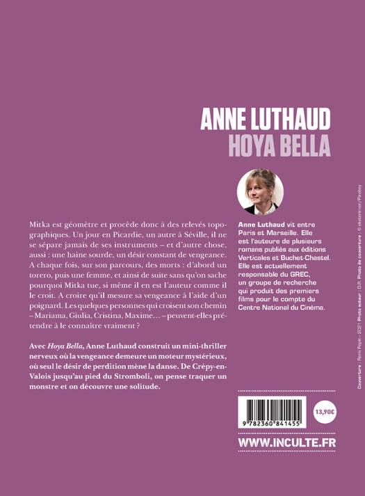 Mitka est géomètre, il procède à des relevés topographiques, mesure l'espace, s'intéresse à la mythologie des endroits qu'il arpente. Un jour en Picardie, un autre à Séville, il ne se sépare jamais de ses instruments et d'autre chose, aussi : une haine sourde, un désir constant de vengeance. On le suit dans ses errances, on le voit aborder des hommes, des femmes, lier de brèves amitiés. Et à chaque fois, sur son parcours : des morts. Car Mitka assassine, froidement, d'abord un torero, puis une femme, et encore une femme. Comme s'il mesurait sa vengeance à l'aide d'un poignard. Quels souvenirs, quelles attentes le relient à Mariama, Giulia, Cristina, Maxime ? Avec Hoya Bella, Anne Luthaud construit un roman nerveux où la vengeance reste un moteur mystérieux, où seul le désir de perdition mène la danse. Comme dans ces films où le split-screen permet de voir, en simultané, diverses actions, le roman nous chahute entre des crimes apparemment gratuits et la psyché trouble de Mitka. De Crépy-en-Valois jusqu'au pied du mont Etna, on pense suivre un monstre et on découvre une solitude.