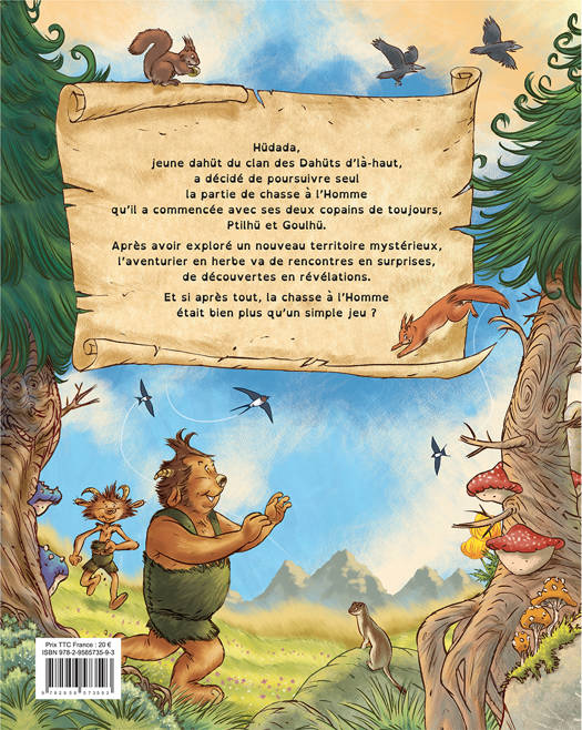 Hüdada, jeune dahüt du clan des Dahüts d’là-haut, a décidé de poursuivre seul la partie de chasse à l’Homme qu’il a commencée avec ses deux copains de toujours, Ptilhü et Goulhü. Après avoir exploré un nouveau territoire mystérieux, l’aventurier en herbe va de rencontres en surprises, de découvertes en révélations. Et si après tout, la chasse à l’Homme était bien plus qu’un simple jeu ?
