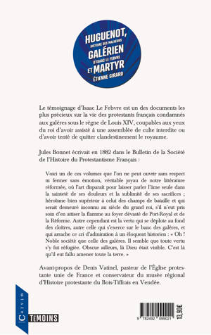 Le témoignage d'Isaac Le Febvre est un des documents les plus précieux sur la vie des protestants français condamnés aux galères sous le règne de Louis XIV, coupables aux yeux du roi d’avoir assisté à une assemblée de culte interdite ou d’avoir tenté de quitter clandestinement le royaume.