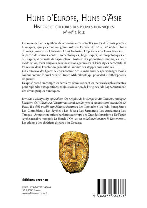 Cet ouvrage fait la synthèse des connaissances actuelles sur les différents peuples hunniques, qui jouèrent un grand rôle en Eurasie du IVe au VIe siècle : Huns d'Europe, mais aussi Chionites, Huns Kidârites, Hephtalites ou Huns Blancs...À partir de sources écrites, archéologiques, linguistiques, anthropologiques et artistiques, il présente de façon claire l'histoire des populations hunniques, leur mode de vie, leurs religions, leurs traditions guerrières et leurs styles décoratifs. Il les resitue dans l'évolution générale du monde des steppes eurasiatiques.