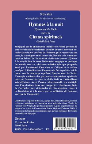 Subjugué par la philosophie idéaliste de Fichte prônant le caractère fondamentalement unitaire du créé, parce qu'enraciné dans le moi profond de l'homme qui le ressource sans cesse, le transfigure et lui donne vie, Novalis crée le romantisme en faisant de l'intériorité ténébreuse du moi (Hymnes à la nuit) le lieu de cette élaboration magique et poétique du monde. Il identifie ainsi l'homme du faire (poïeîn), soit le poète, avec le démiurge suprême, Dieu incarné, le Christ...