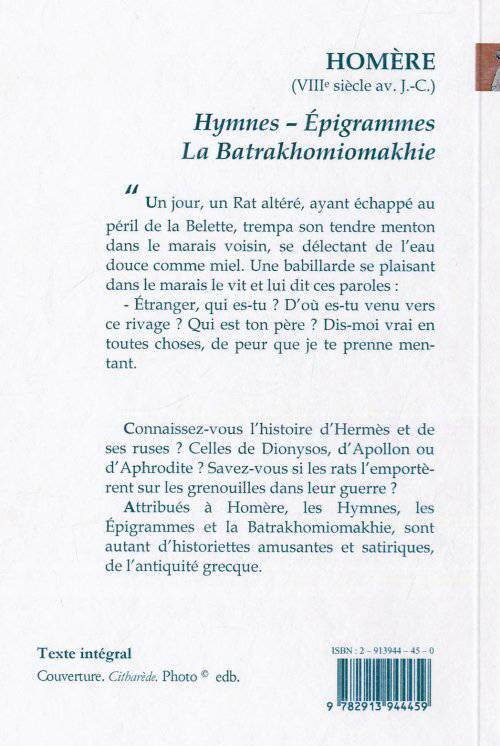 HYMNES; LA BATRAKHOMIOMAKHIE; ÉPIGRAMMES