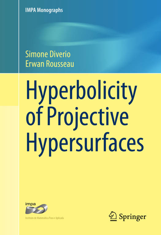 Thisbook presents recent advances on Kobayashi hyperbolicity in complex geometry,especially in connection with projective hypersurfaces. This is a very activefield, not least because of the fascinating relations with complex algebraicand arithmetic geometry. Foundational works of Serge Lang and Paul A. Vojta,among others, resulted in precise conjectures regarding the interplay of theseresearch fields (e.g. existence of Zariski dense entire curves shouldcorrespond to the (potential) density of rational points).