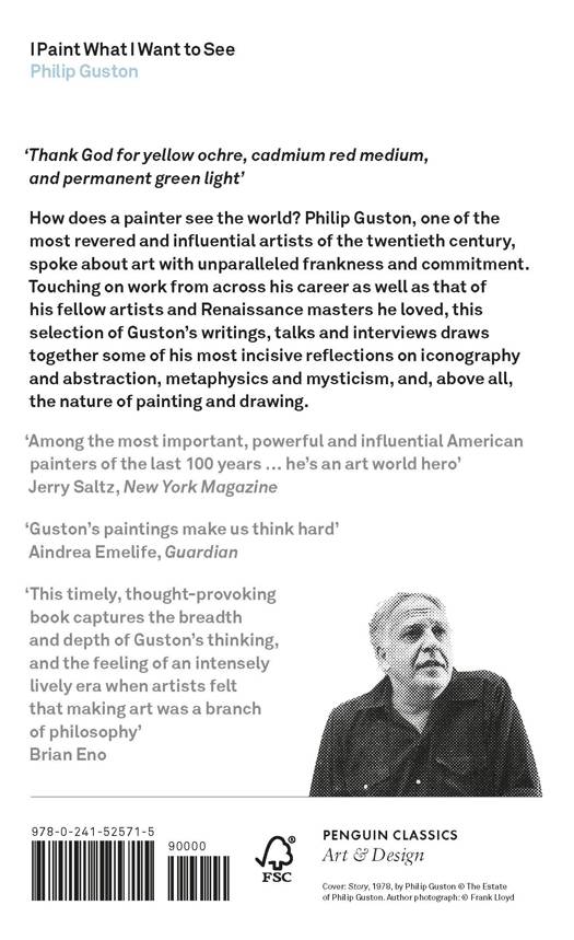 'Thank God for yellow ochre, cadmium red medium, and permanent green light' How does a painter see the world? Philip Guston, one of the most influential artists of the twentieth century, spoke about art with unparalleled candour and commitment. Touching on work from across his career as well as that of his fellow artists and Renaissance heroes, this selection of his writings, talks and interviews draws together some of his most incisive reflections on iconography and abstraction, metaphysics and mysticism, and, above all, the nature of painting and drawing.