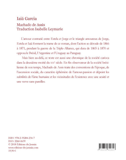 L’amour contrarié entre Estela et Jorge et le triangle amoureux de Jorge, Estela et Iaiá forment la trame de ce roman, dont l’action se déroule de 1866 à 1871, pendant la guerre de la Triple-Alliance, qui dura de 1865 à 1870 et opposa le Brésil, l’Argentine et l’Uruguay au Paraguay. Mais bien au-delà, ce texte est aussi une chronique de la société carioca dans la deuxième moitié du xixe siècle. En fin observateur de la société brésilienne de son temps, Machado de Assis traite des conventions de l’époque, de l’ascension sociale, du caractère éphémère de l’amour-passion et dépeint les subtilités de l’âme humaine et les vicissitudes de l’existence avec une acuité et une verve sans pareilles.