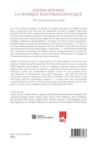 Les oeuvres électroacoustiques de Xenakis ne comptent que pour un dixième dans sa production, mais elles sont très importantes. Composées à des moments clés de l'évolution de Xenakis, ces oeuvres peuvent s'analyser pour comprendre divers aspects de sa pensée musicale, théorique, esthétique et interdisciplinaire : recherches sur le bruit, théorie du granulaire, expérimentations en matière de spatialisation, réalisations interartistiques. (Des articles en français et en anglais).
