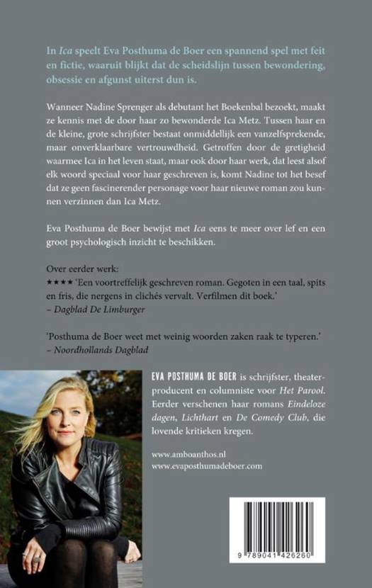 Wanneer Nadine Sprenger als debutante het Boekenbal bezoekt, maakt ze kennis met de door haar zo bewonderde Ica Metz. Tussen haar en de kleine, grote schrijfster bestaat onmiddellijk een vanzelfsprekende, maar onverklaarbare vertrouwdheid. Getroffen door de gretigheid waarmee Ica in het leven staat, maar ook door haar werk, dat leest alsof ze elk woord speciaal voor haar geschreven heeft, komt ze tot het besef dat ze geen fascinerender personage voor haar nieuwe roman zou kunnen verzinnen dan Ica Metz.