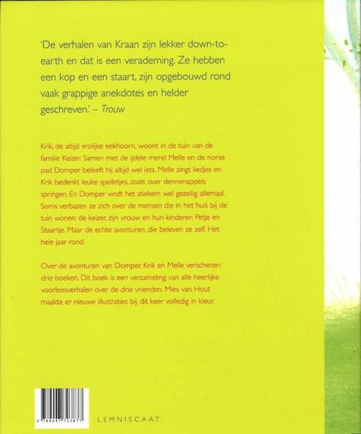 In deze ultieme voorleesbundel zijn alle avonturen opgenomen die Krik, Domper en Melle beleven in de tuin van de familie Keizer. Door de ogen van de kleine dieren zien we onder andere hoe de mensen met de natuur omgaan. Want al verstaan wij de dieren niet, uit de verhalen blijkt dat zij ons maar al te goed verstaan!