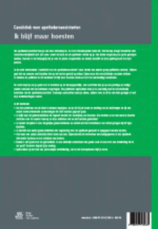 Als apothekersassistent ben je een ware duizendpoot. Je voert uiteenlopende taken uit. Het beroep brengt bovendien veel verantwoordelijkheid met zich mee: zowel de klant als de apotheker rekent op je. Een kleine vergissing kan grote gevolgen hebben. Daarom is het belangrijk dat je over de juiste competenties en kennis beschikt en deze geïntegreerd toe kunt passen.In de serie werkboeken ‘Casuïstiek voor de apothekersassistent’ staat steeds een andere groep patiënten centraal. Telkens gaat het om mensen met klachten die op het eerste gezicht op elkaar lijken maar die verschillende oorzaken hebben. Zo hebben de patiënten in dit werkboek Ik blijf maar hoesten allemaal last van hardnekkige hoestbuien. De serie helpt je om je goed voor te bereiden op de beroepspraktijk, met casuïstiek kun je op een prettige en veilige manier oefenen met verschillende zorgvragen. Via praktische opdrachten kom je in aanraking met de verschillende kerntaken van de apothekersassistent. Sommige opdrachten maak je alleen, andere voer je uit in een klein groepje of met al je medeleerlingen samen.In dit werkboek: • Om het probleem van de klant te kunnen begrijpen, sta je stil bij de bouw en werking van de luchtwegen en bij een aantal veelvoorkomende aandoeningen die met hoesten gepaard gaan.• Je kijkt naar de geneesmiddelen die ingezet worden ter bestrijding van hoesten. Hoe werken ze en wat moet je klanten vertellen over de manier waarop ze deze middelen wel en niet moeten gebruiken?• Je neemt recepten in voor dergelijke geneesmiddelen en oefent met het verhelderen van zelfzorgvragen bij dit type klachten.• Je bereidt een aantal geneesmiddelen die regelmatig door de apotheek gemaakt of aangepast moeten worden.• Ook komt een aantal administratieve taken aan bod. Bijvoorbeeld hetverwerken van klantgegevens in het Apotheek Informatie Systeem en het schrijven van brieven.• Roken is niet goed voor de gezondheid. Is een wettelijk rookverbod een goede zaak of een vorm van betutteling die te ver gaat? Daarover bepaal jij je mening.• Opdrachten op het vlak van persoonlijke ontwikkeling, ook in het beroepsleven blijf je leren.