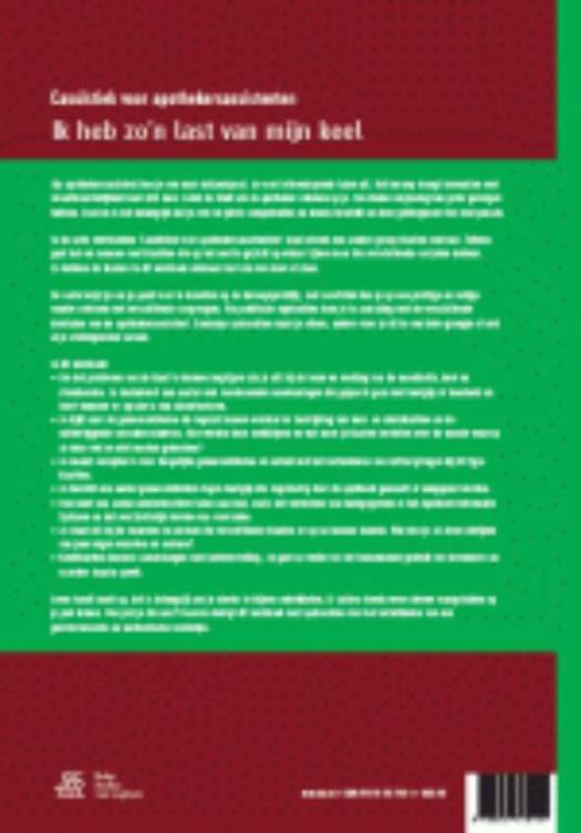 Als apothekersassistent ben je een ware duizendpoot. Je voert uiteenlopende taken uit. Het beroep brengt bovendien veel verantwoordelijkheid met zich mee: zowel de klant als de apotheker rekenen op je. Een kleine vergissing kan grote gevolgen hebben. Daarom is het belangrijk dat je over de juiste competenties en kennis beschikt en deze geïntegreerd toe kunt passen.In de serie werkboeken ‘Casuïstiek voor apothekersassistenten’ staat steeds een andere groep klanten centraal. Telkens gaat het om mensen met klachten die op het eerste gezicht op elkaar lijken maar die verschillende oorzaken hebben. Zo hebben de klanten in dit werkboek allemaal last van hun keel of stem. De serie helpt je om je goed voor te bereiden op de beroepspraktijk, met casuïstiek kun je op een prettige en veilige manier oefenen met verschillende zorgvragen. Via praktische opdrachten kom je in aanraking met de verschillende.De serie helpt je om je goed voor te bereiden op de beroepspraktijk, met casuïstiek kun je op een prettige en veilige manier oefenen met verschillende zorgvragen. Via praktische opdrachten kom je in aanraking met de verschillende kerntaken van de apothekersassistent. Sommige opdrachten maak je alleen, andere voer je uit in een klein groepje of met al je studiegenoten samen.In dit werkboek: • Om het probleem van de klant te kunnen begrijpen sta je stil bij de bouw en werking van de mondholte, keel en stembanden. Je bestudeert een aantal veel voorkomende aandoeningen die gepaard gaan met keelpijn of heesheid en leert wanneer er sprake is van alarmfactoren.• Je kijkt naar de geneesmiddelen die ingezet kunnen worden ter bestrijding van keel- en stemklachten en de achterliggende oorzaken daarvan. Hoe werken deze medicijnen en wat moet je klanten vertellen over de manier waaropze deze wel en niet moeten gebruiken?• Je neemt recepten in voor dergelijke geneesmiddelen en oefent met het verhelderen van zelfzorgvragen bij dit type klachten.• Je bereidt een aantal geneesmiddelen tegen keelpijn die regelmatig door de apotheek gemaakt of aangepast worden.• Ook komt een aantal administratieve taken aan bod, zoals het verwerken van klantgegevens in het Apotheek Informatie Systeem en het overzichtelijk indelen van voorraden.• Je staat stil bij de waarden en normen die verschillende klanten er op na kunnen houden. Wat doe je als deze afwijken van jouw eigen waarden en normen?• Keelklachten kunnen samenhangen met luchtvervuiling. Je gaat na welke rol het toenemende gebruik van brommers en scooters daarin speelt.Leren houdt nooit op, het is belangrijk om je steeds te blijven ontwikkelen. Er zullen steeds weer nieuwe vraagstukken op je pad komen. Hoe pak je die aan? Daarom eindigt dit werkboek met opdrachten over het ontwikkelen van een gestructureerde en methodische werkwijze.