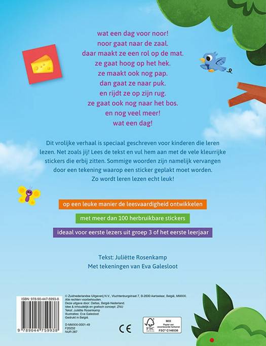 Het vrolijke verhaal in dit boek van Deltas is speciaal geschreven voor kinderen die leren lezen. Net zoals jij! Lees de tekst en vul hem aan met de vele kleurrijke stickers die erbij zitten. Sommige woorden zijn namelijk vervangen door een tekening waarop een sticker geplakt moet worden. Zo wordt leren lezen echt leuk! - op een leuke manier de leesvaardigheid ontwikkelen - met meer dan 100 herbruikbare stickers - op leesniveau AVI START/AVI 1 - ideaal voor eerste lezers uit groep 3 of het eerste leerjaar