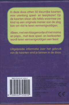 In deze doos zitten 50 kleurrijke kaarten voor urenlang speel- en leerplezier! Op de kaarten staan alle tafels waarmee uw kind op een originele manier aan de slag kan om vlot te leren vermenigvuldigen. Alleen, met een klasgenootje of met mama en papa... met deze speel- en leerkaarten wordt leren vermenigvuldigen een feest.