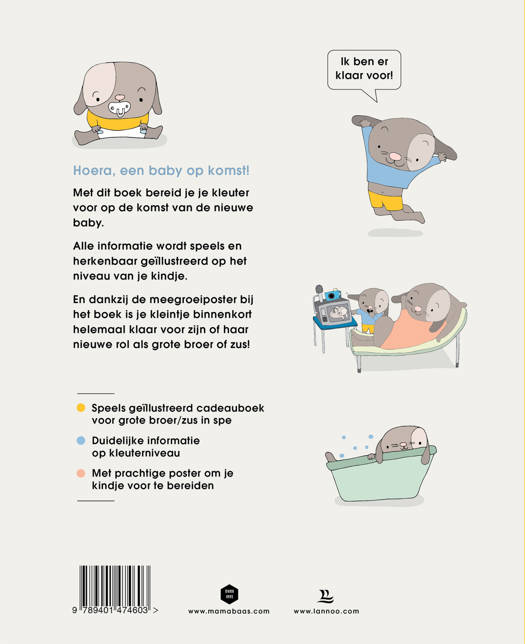 Met dit boek bereid je je kleuter voor op de komst van de nieuwe baby. Alle informatie wordt speels en herkenbaar geïllustreerd op het niveau van je kindje. En dankzij de meegroeiposter bij het boek is je kleintje binnenkort helemaal klaar voor zijn of haar nieuwe rol als grote broer of zus!