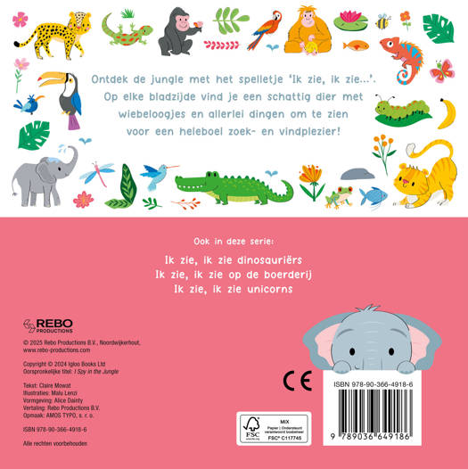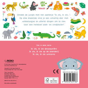 Ontdek de jungle met het spelletje ‘Ik zie, ik zie...’. Op elke bladzijde vind je een schattig dier met wiebeloogjes en allerlei dingen om te zien voor een heleboel zoek- en vindplezier!