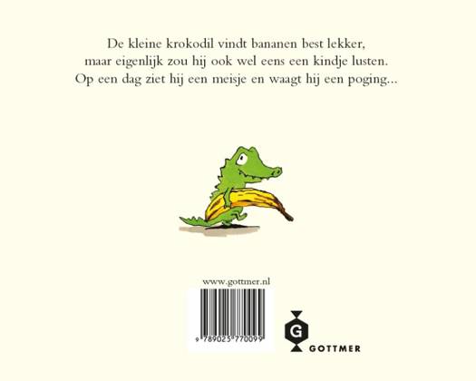 Een klein krokodilletje eet altijd bananen, maar op een dag heeft hij trek in iets anders: hij zou wel eens een kindje lusten! Zijn ouders weten zich geen raad en proberen hem allerlei ander lekkers voor te schotelen. Maar het kleine krokodilletje is vastbesloten en gaat op zoek naar een kindje. Hij komt een meisje tegen, maar die laat zich niet zomaar opeten...