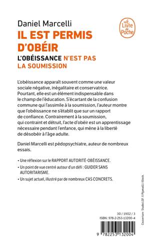 L’autorité redevient à la mode, mais l’obéissance, qui est pourtant son corollaire obligé, reste mal vue. Nous avons tendance à l’assimiler à de la soumission. Or Daniel Marcelli nous montre qu’on se soumet à un pouvoir, mais qu’on adhère à une autorité. Et si la soumission s’obtient par la contrainte ou par la séduction, l’obéissance ne peut s’établir que sur un rapport de confiance. Tandis que la soumission détruit, l’obéissance nous permet de nous construire. L’auteur s’appuie sur des cas concrets pour nous rappeler opportunément que l’apprentissage de l’obéissance, nécessaire pendant l’enfance, mène à l’indispensable liberté de désobéir à l’âge adulte. Il apporte ainsi une réflexion nouvelle sur un sujet très actuel.