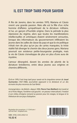 À Rio de Janeiro, dans les années 1970, Mariana et Cássio vivent une grande passion. Mais elle est la fille d’un riche homme d’affaires sympathisant de la dictature militaire, et lui, un garçon d’humble origine. Dans la période la plus répressive du régime, alors que toutes les manifestations intellectuelles et artistiques étaient sévèrement censurées, lorsque des informateurs du gouvernement infiltraient les jeunes dans les salles de classe du pays et que la vie politique n’était rien de plus qu’un jeu de cartes marquées, la triste réalité fait diverger le chemin des deux jeunes gens. L’amour désespéré, durant les années de plomb de la dictature brésilienne, entre deux jeunes aux origines et chemins différents.