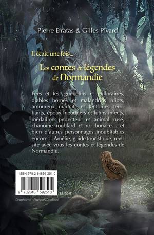 Fées et fés, goubelins et milloraines, diables bornés et malandrins idiots, amoureux maudits et fantômes terrifiants, époux meurtriers et lutins infects, médaillon protecteur et animal rusé, chanoine roublard et roi bonace... et bien d'autres personnages inoubliables encore... Amélie, guide touristique, revisite avec vous les contes et légendes de Normandie.
